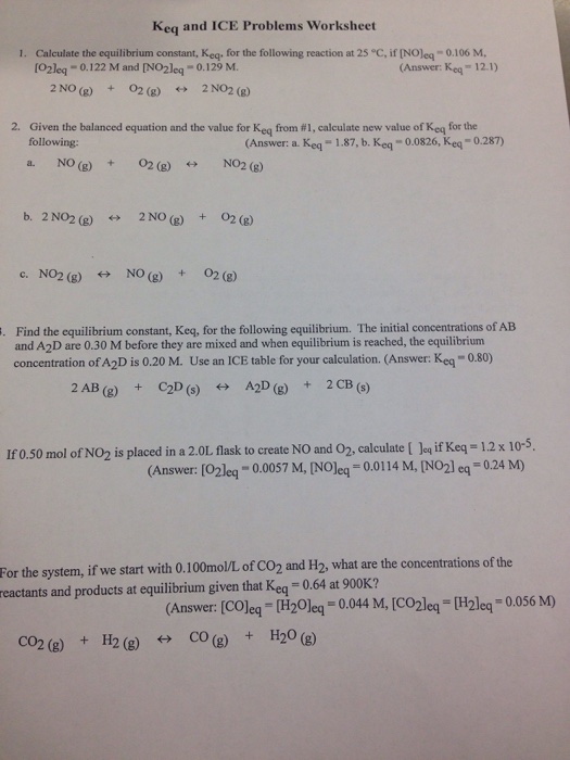 Solved Keq And Ice Problems Worksheet Calculate The Chegg Com